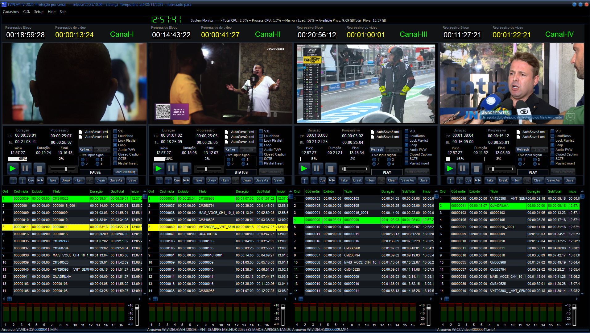 O TVPLAY-4 é um exibidor de vídeo/playout de 4 canais.